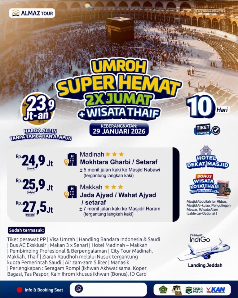 Bersama Alif Tour, Mulai 23 Juta-an, Sudah bisa Umroh Nyaman ALL IN Tanpa Biaya Tambahan